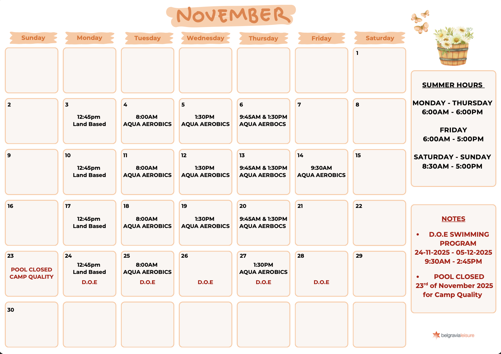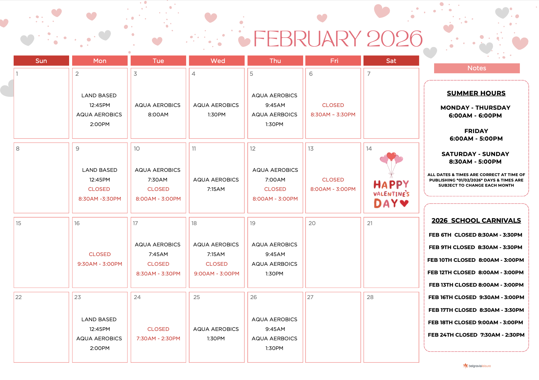 For more information on our aqua aerobics classes please click below to view our class timetable.